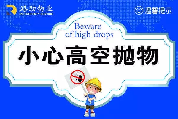 为保障各位大大人身财产安全,为构建和谐文明小区贡献力量,路劲物业温馨提示禁止高空抛物,并注意以下事项:
