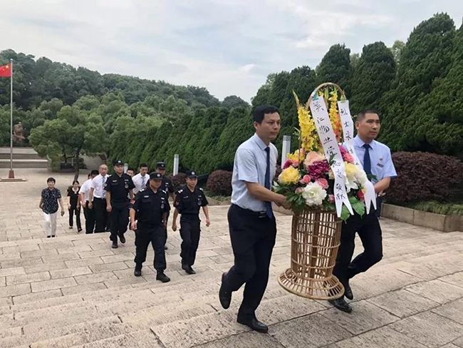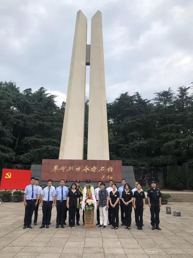 在滨江物业党总支书记郭春兰的带领下,党员向革命先烈敬献花篮,全体党员再一次重温那段刻骨铭心的入党誓言“我志愿,加入中国共产党……”誓词嘹亮,响彻了这苍松掩映,庄严肃穆的纪念广场,大家深切缅怀革命先烈的崇高精神和不朽伟业。