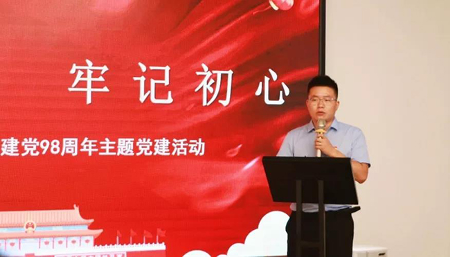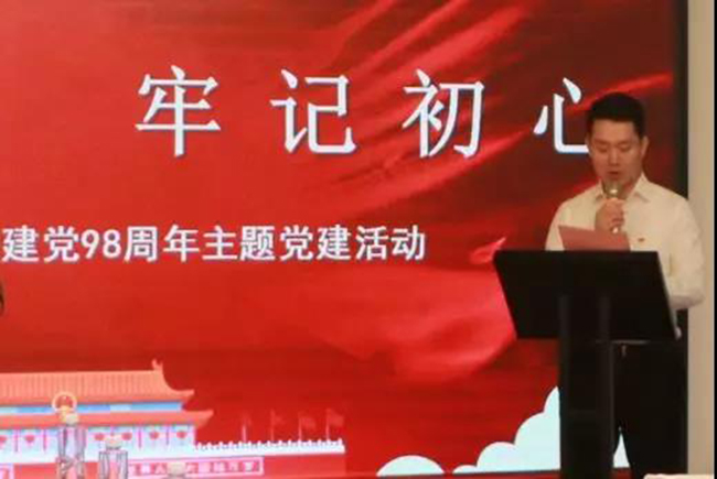 优秀党员代表,建业物业副总经理刘德军同志分享回顾了自己的入党初心和感想,述说自己受党教育、接受党组织考验,光荣成为一名共产党员的不平凡经历。建党98周年之际,要感谢党让我们过上幸福生活,同时勉励大家从自身做起,时刻保持党员意识,带好头,走正道,务正业,将建业至尚商业物业打造成为行业标杆。