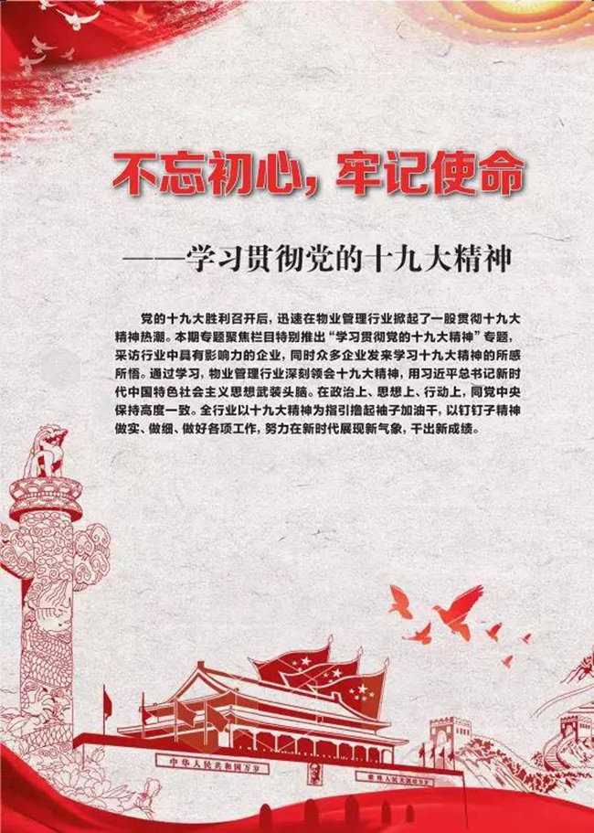 二是专门在《中国物业管理》2017年第11期做了“学习贯彻党的十九大精神”的专题,沈建忠会长以《共同开创物业管理行业的新时代》为题撰写卷首语,引导行业围绕满足业主美好生活需要、弘扬工匠精神、人才培养、绿色管理、科技创新、智慧社区、诚信服务、转型升级等专题深入思考。