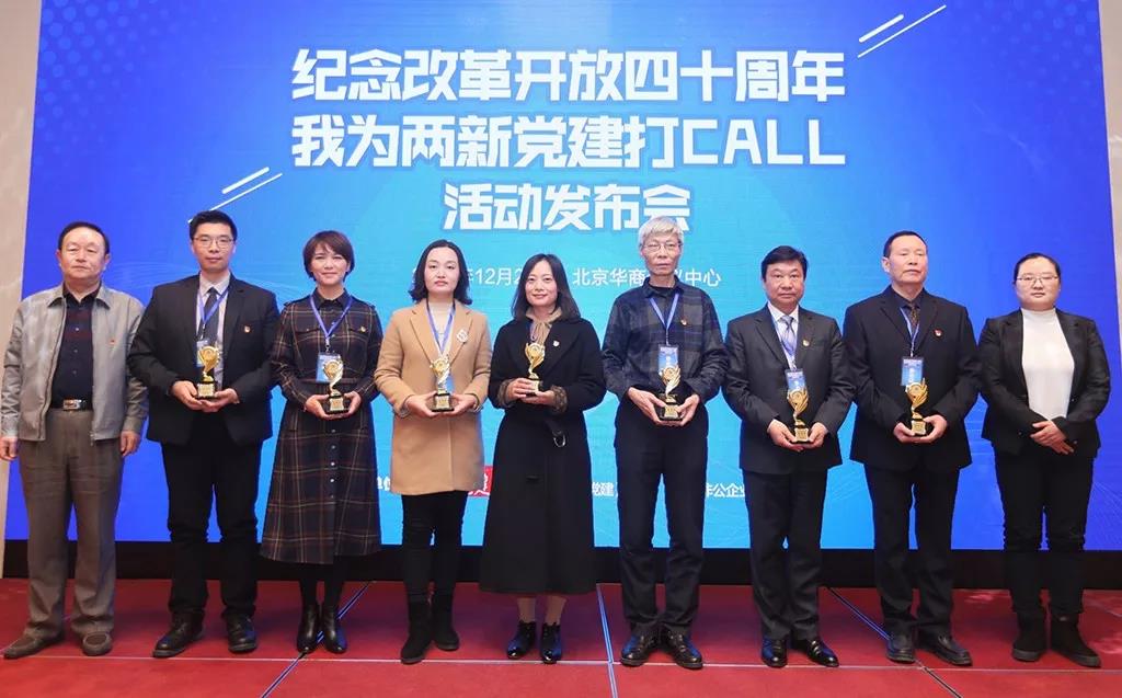 助友创美物业党委书记刘小华(中)在北京领取全国两新党建金雁奖
