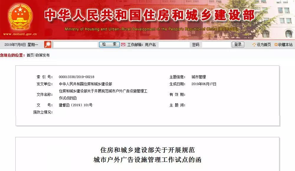 为深入贯彻习近平总书记关于住房和城乡建设工作的重要批示精神,落实全国住房和城乡建设工作会议部署,按照城市品质提升的总体要求,经协商一致,决定在长春、武汉、成都、厦门、青岛、深圳、无锡、株洲、如皋9个城市开展规范城市户外广告设施管理工作试点。