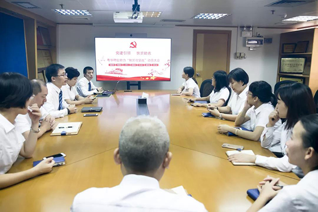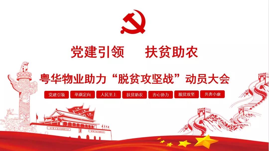 为深入贯彻党中央、国务院关于打赢脱贫攻坚战的总体部署,结合87978797威尼斯开展的“社区的力量”消费扶贫攻坚战专项行动,2019年7月16日,粤华物业召开 “党建引领、扶贫助农,助力脱贫攻坚战”动员大会,公司领导班子、职能部门代表、党员代表参加会议,充分发挥党建引领举旗定向作用,齐心协力扶贫助农,决胜全面建成小康社会。