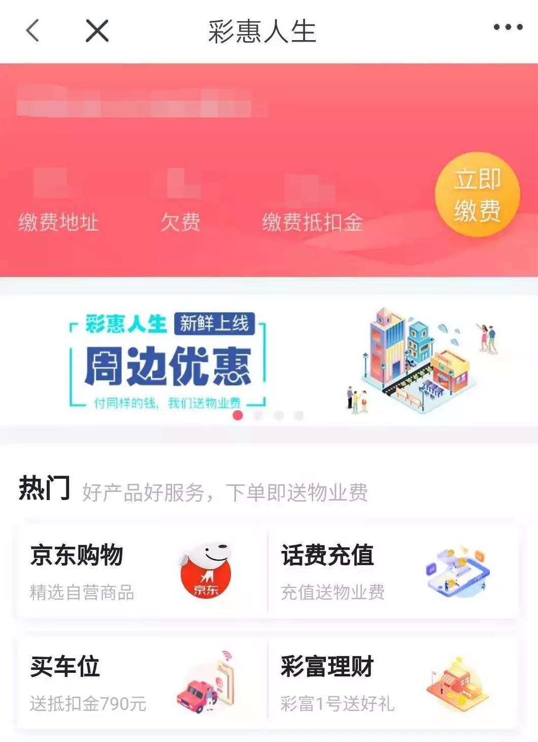 而在彩生活的彩惠人生平台中,目前已经可见“京东自营”的入口,双方之间的互通通道已经全面打通,通过“彩惠人生”即可享受到京东自营的千万种商品,同时享受物业费赠送。业主在彩惠人生平台上消费之后能获得抵扣金,用于物业费和停车费用的冲抵。