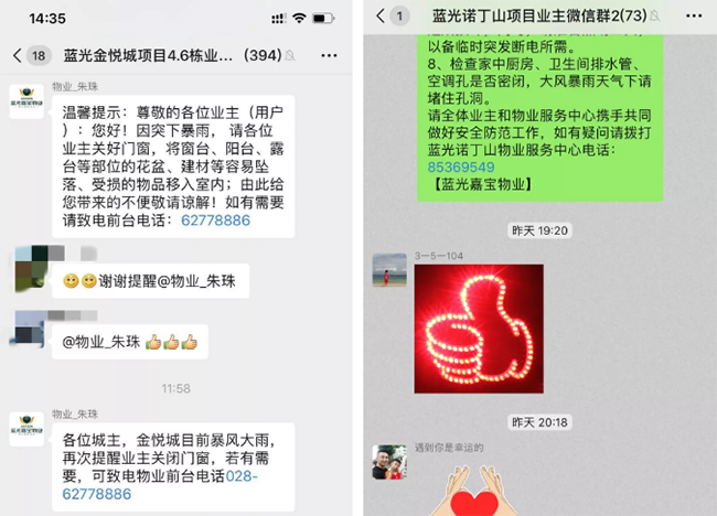 在今天这样的紧急情况下,嘉宝客服、工程、环境、秩序全体动员,从地下停车场、地面园区、到业主家中,从避雷设施、排水设施到公用设备等方方面面,从里到外为业主提供全方位保全。
