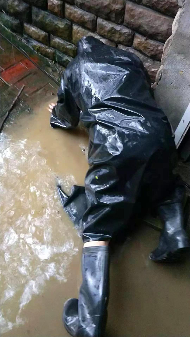 奋力抗洪后的嘉宝人瘫坐在路边