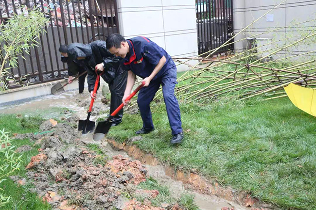 每年汛期预警,嘉宝会从防汛演练、应急预案制定和防汛基础工作落地等方面,做好预警动作,防患于未然。早在4月,嘉宝就开始铺排防汛防洪安全预防工作,其中包括了雨污系统、防水设施、防雷设施、大小乔木支撑和高空设施的检查,以及防汛物资器材准备和空置房管理。当暴雨来临后,嘉宝服务团队的应急动作就是高效有序。