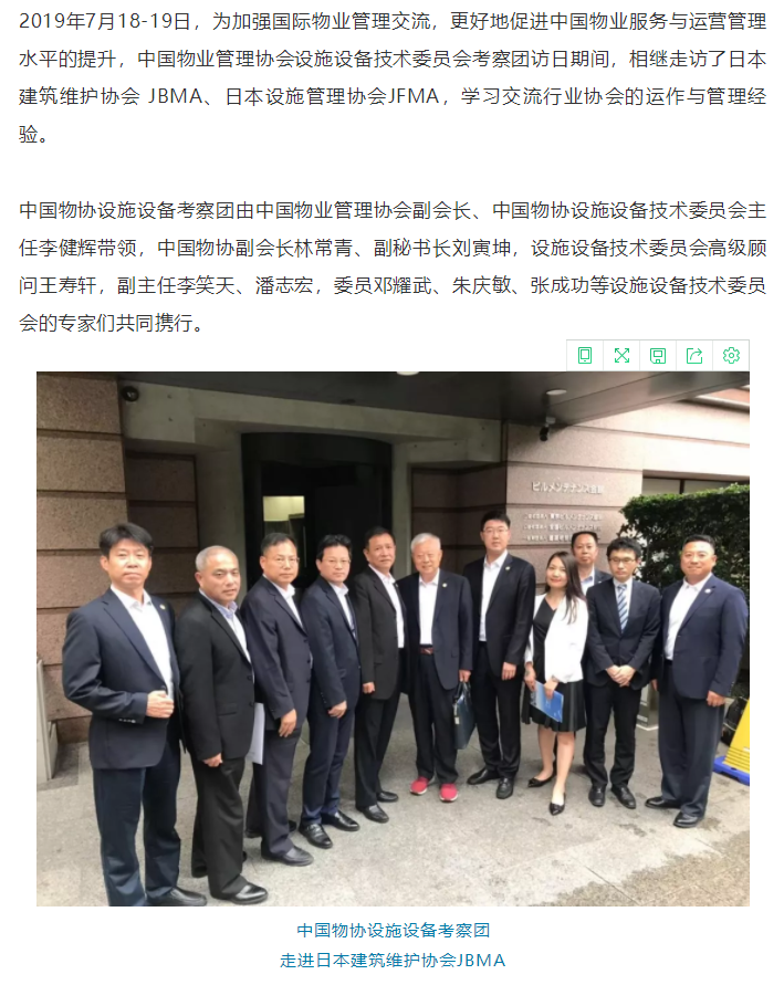 中国物协设施设备技术委员会走进日本建筑维护协会JBMA与日本设施管理协会JFMA