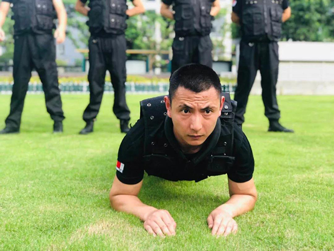 刘其明在加入富力物业江苏公司前,在四川乐山陆军应急机动作战部队服役了5年。滚过泥潭、乘过坦克,他说这5年的峥嵘岁月,够他老了以后向孩子们“吹牛”。