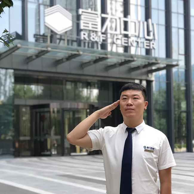 一方面,从事秩序方面的工作与多年来当兵的经验、专长比较匹配;另一方面,富力的家文化非常感染内心温柔的他,在这样的企业里工作,备受关怀、倍感友好。曾经的他在军队,战士为兄弟;而现在富力社区,同事业主为家人。他喜欢这样的氛围,并快速适应退伍后工作。