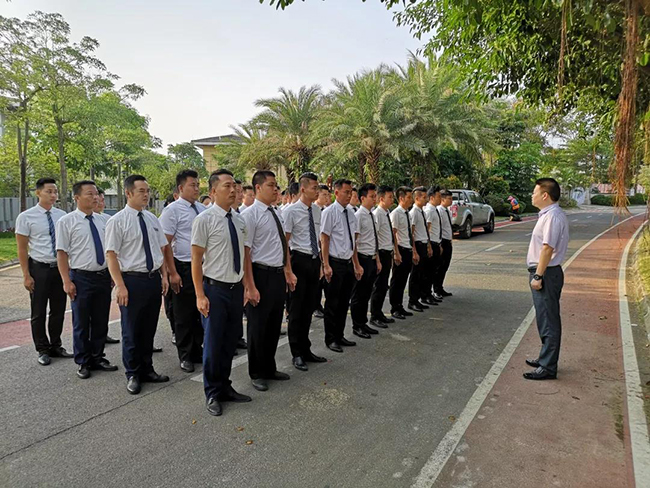 学习军人的优秀作风,富力物业每位秩序员都严明律己,就连用餐都保持着在军队时举止端庄,不相互攀谈的好习惯。我们守护家园,正如军人保家卫国一样,用深深的责任感为社区带来360°信心守护。
