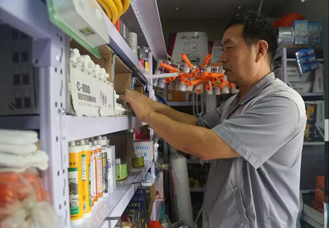 走进10平米的南侧实体店,“麻雀虽小,五脏俱全”,五层铁皮货架上整齐摆放着上百种日常维修部件,以及开关面板、电源插座、杀虫剂等便民生活用品,旁边清晰地公示着入户维修项目,居民不仅可以买配件自行解决,也可以叫维修师傅上门安装。