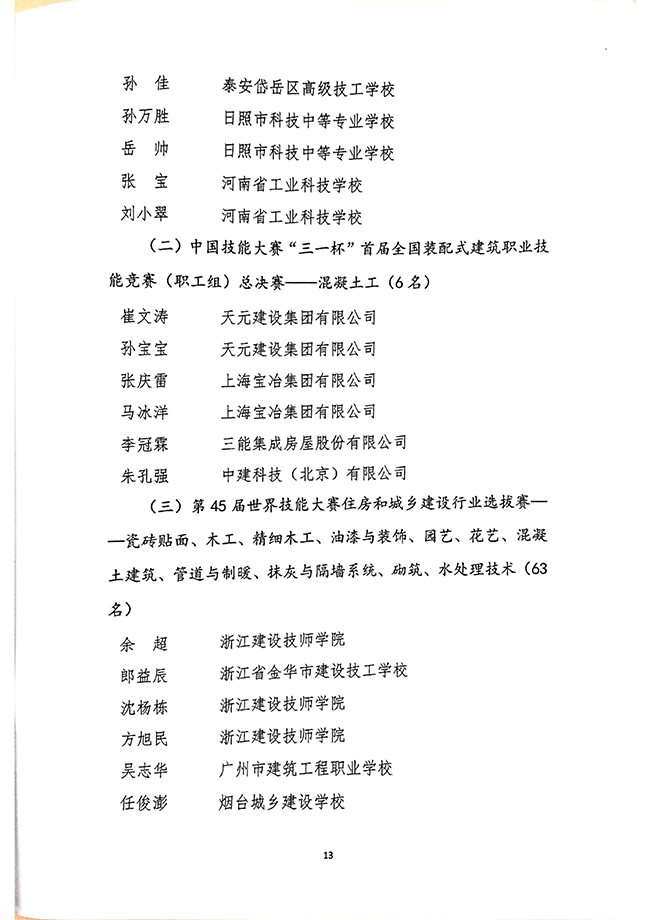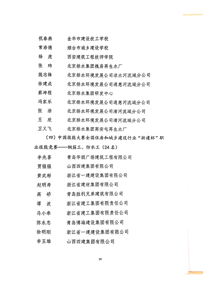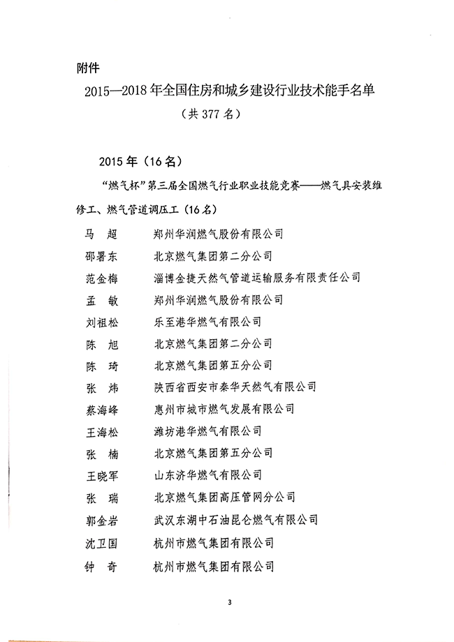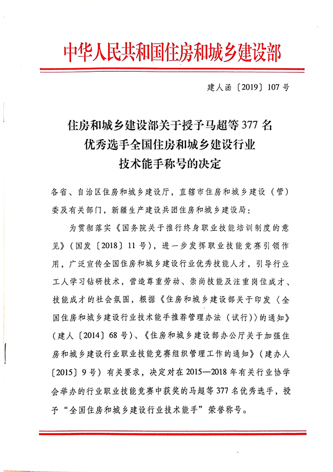 住房和城乡建设部关于授予马超等377名优秀选手全国住房和城乡建设行业技术能手称号的决定