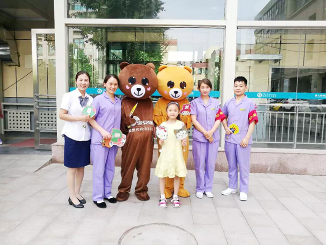 “我一直生病,一直住在医院里,没有机会和同学在一起玩儿,物业阿姨总会趁着空闲时间找我玩,今年六一他们变成我最喜爱的“熊大”和“熊二”送了我礼物,这是我收到最好的六一礼物了。”