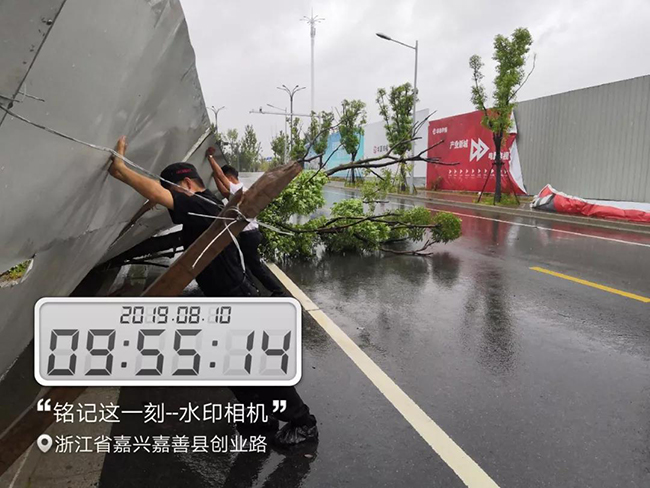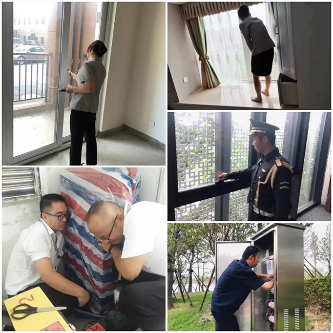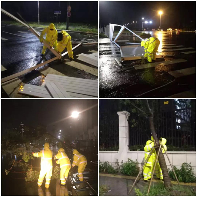 了解到“利奇马”将于9日夜里至10日早晨登陆后,分公司紧锣密鼓地进行防台部署,反复检查园区内所有门窗、外立面悬挂、设施设备等牢固情况,并对电梯实施保护举措。