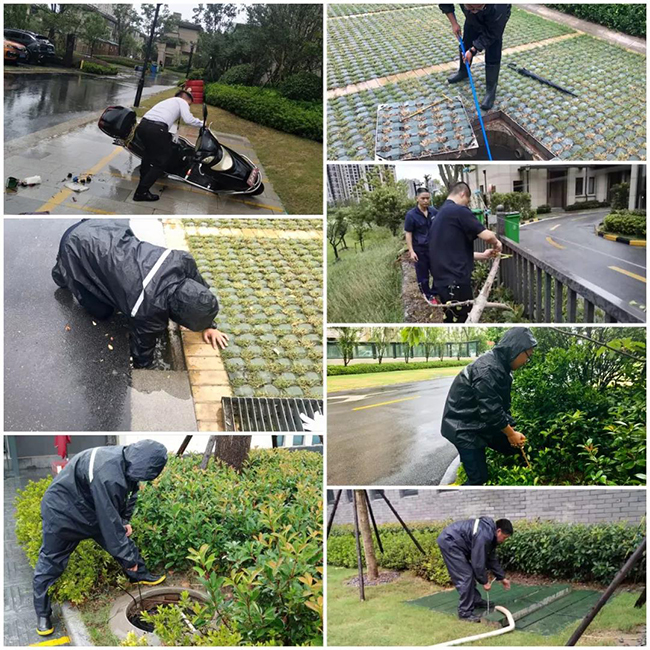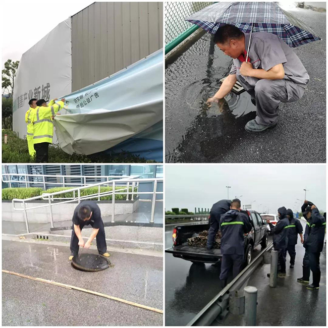 巳时来临,各项目对园区设施设备进行雨后复查,清掏下水管网,避免下水道堵塞。