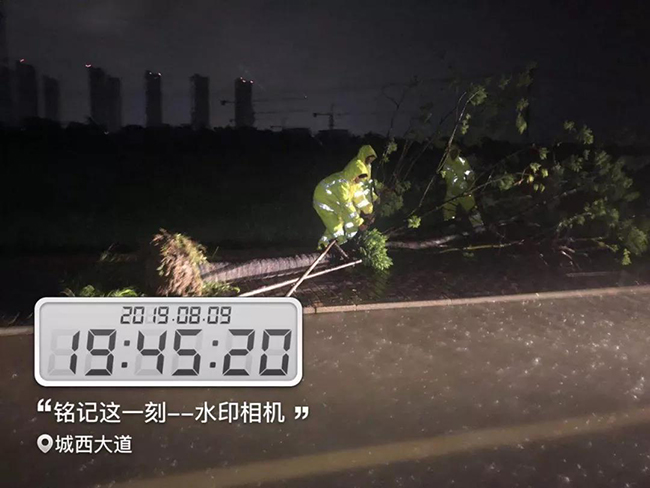 夜深了,产业新城的居民逐渐入睡,而对物业人的考验才正式开始。各条线,各项目加强管辖范围内巡逻,分公司联动配合,实时关注台风“利奇马”动向,及时应对。