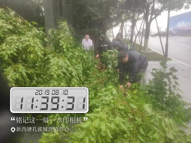 午时雨量变大,风力持续维持在10级,物业人丝毫不曾松懈,为保障产业新城,践行自己的职责。