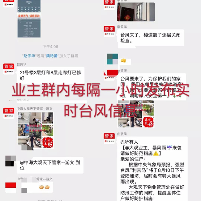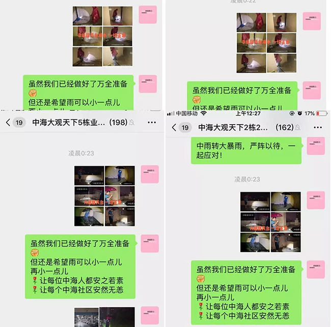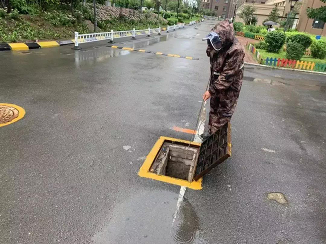 在长春,中海物业各管理处提前对楼顶、路面、车库的下水口和污水井逐一清查,防汛沙袋等物资移至所需处,做好防洪准备工作。