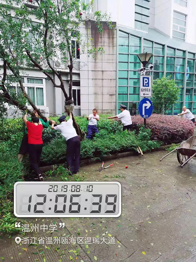 时刻坚守,第一时间清除隐患和险情。树木扶植、断树移除、墙体脱落隐患清除、设备设施巡查及抢修,沟、渠、管、井、盖等疏通,让业主安心、放心。