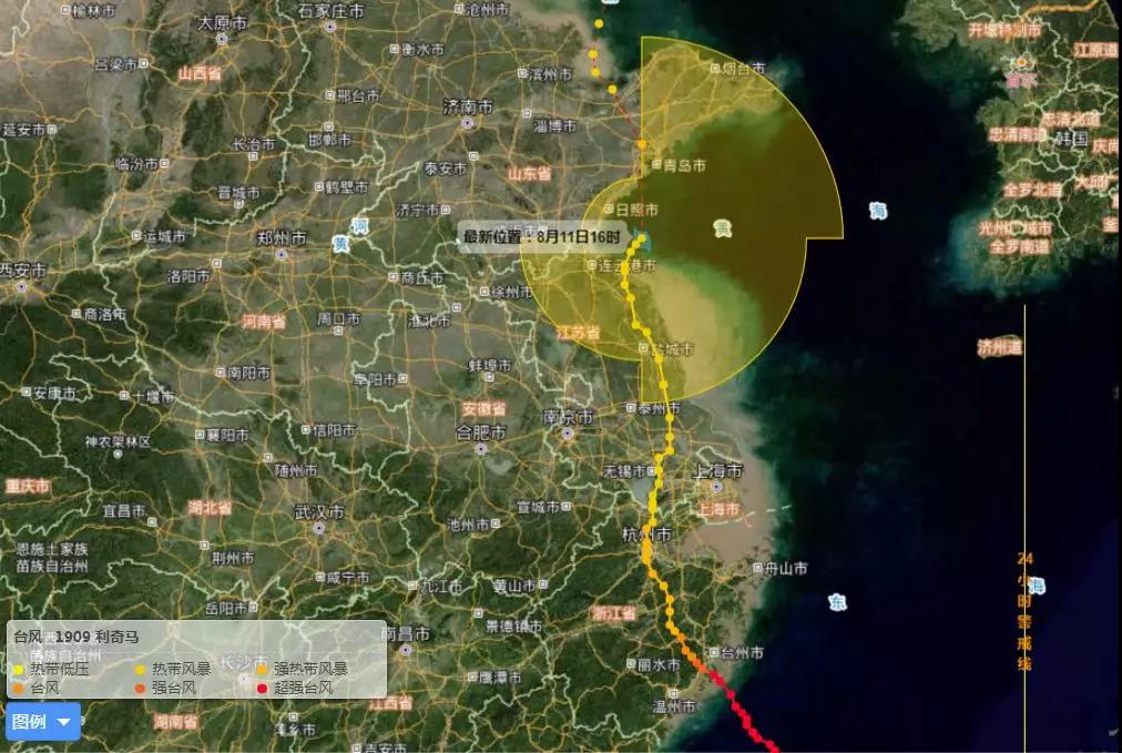 8月10日凌晨,利奇马从浙江省温岭市沿海登陆,成为1949年以来登陆华东第三强的台风,途经杭州、无锡、 盐城、连云港等地,11日傍晚到夜间在山东半岛南部沿海再次登陆。