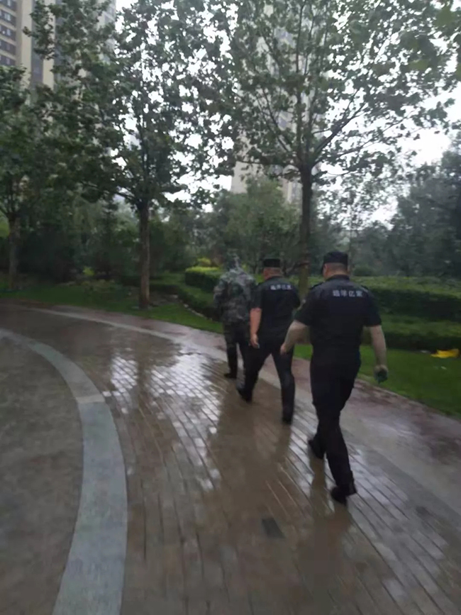 面对狂风骤雨,物业人没有畏惧,没有退缩,没有懈怠,伴着漫漫长夜,继续在风雨中忙碌。