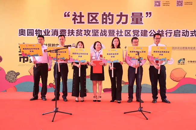 2019年8月22日,“社区的力量”——奥园物业消费扶贫攻坚战暨社区党建公益行启动式在广州奥园城市天地正式举行,本次启动式不仅获得了广州市物业管理协会、中国社区扶贫联盟、易居乐农、中物研协等单位的大力支持,同时还有络绎不绝的业主、商家们以及社会各界人士莅临现场,共襄盛举。