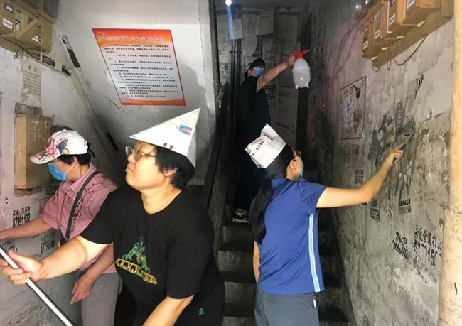 为了配合引入物业,社区号召党员周六日进行了三次大扫除,清理长期占用公共空间的废旧家具和车辆,带领居民自己动手清理楼道内小广告。小区面貌渐渐从“根本不能看”向“还看得过去”转变。