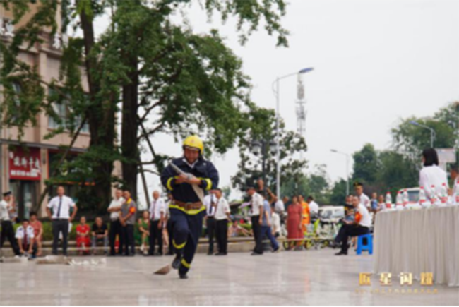 铿锵有力的入场令让评委眼前一亮,消防水带的抛接比拼的不仅仅是速度,更是刻苦训练的展示,汇丰物业的小伙子们把“平时多流汗