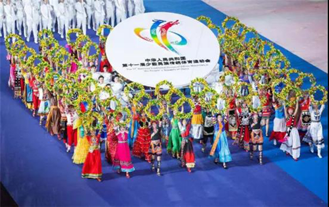早在2005年,国务院明确规定国家定期举办少数民族传统体育运动会,全国少数民族传统体育运动会正式成为国家法定活动,每四年举行一次。本届民族运动会,全国31个省区市、新疆生产建设兵团、中国人民解放军,以及台湾少数民族组成34个代表团,共7009人的专职运动员,参加陀螺、高脚竞速、蹴球等17个竞赛项目,140个竞赛小项,以及194个表演项目的比赛。