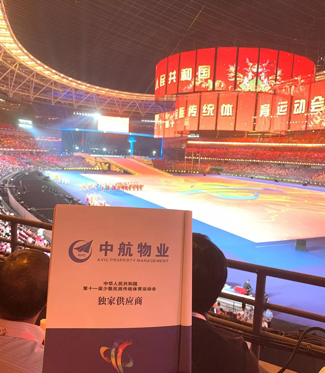 中航物业有幸成为郑州奥体中心的物业服务运营商,并成为本届民族运动会的“独家供应商”。早在7月16日的“迎民族盛会 庆七十华诞”保障第十一届全国少数民族传统体育运动会物业服务誓师大会上,就用铿锵的声音宣誓着全员办好民族运动会的信心和决心,确保全国民族运动会安全有序、一丝不苟、精彩出彩,努力打造“一流的场馆”、 “一流的服务”、 “一流的保障”,向郑州市委市政府、河南省委省政府和全国人民交上一份满意的答卷。如今,开幕式的完美落幕,是中航物业交出的第一份答卷,在接下来的运动会赛事与闭幕式上,中航物业将再接再厉,不辱使命。