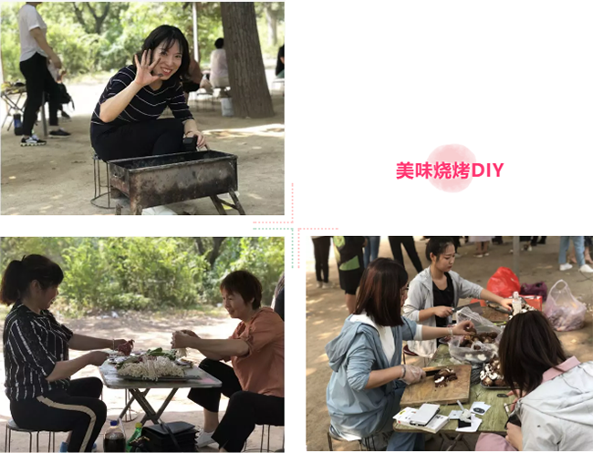 趣味游戏的同时,负责准备美食的家人们给我们稳住了“大后方”,羊肉串、牛肉串、金针菇、玉米、土豆.....丰盛的菜品在他们的手里,在烤架上,不停的翻转,香味扑鼻。还有几位家人联合制作秘制的地锅鸡,也堪称一绝。果然六合的家人们一个个都是料理小能手....