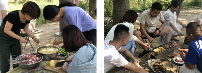 我们的午餐时间到了,大家围坐在一起,没有感觉到一丝的拘束,集体撸串的场面好不热闹。在集团领导的带领下,大家举杯同饮,祝愿六合基业长青。