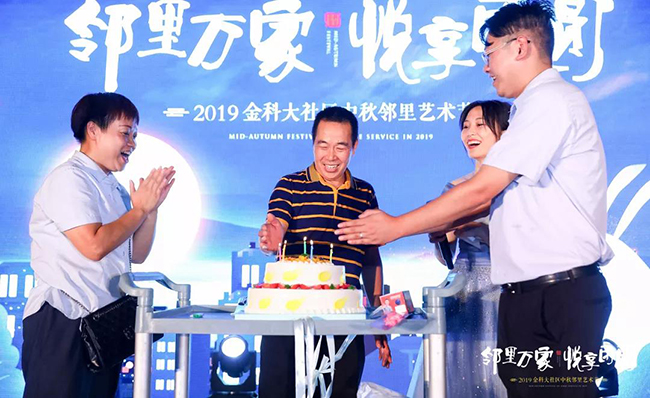 与休爷爷相似,江津中央公园城的刘先生也在邻里艺术节上收获满满的温暖。“感谢金科,这是我51年来过的最感动的一个生日!”在江津中央公园城的中秋邻里艺术节上,金科和业主们一起为过生日的刘先生,送上了一份生日祝福,使得刘先生感动到几度哽咽。当主持人问他是否收到礼物时,他笑着说:“在此刻之前是没有收到,现在收到了,和大家一起过生日就是最好的礼物。”