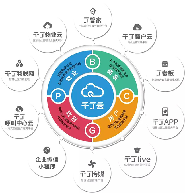 千丁通过独创的IoT万物互联+SaaS即租即用+CS成功陪伴三位一体模式,提供一整套智慧社区综合解决方案。