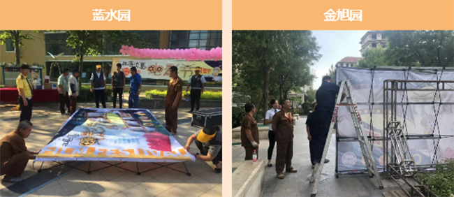 为让本次电影节活动圆满举行,带给大家一个难忘的观影体验,路劲/隽丰物业各社区工作人员团结一心,在活动开始前仔细的布场准备。