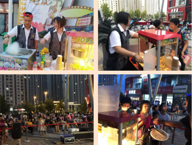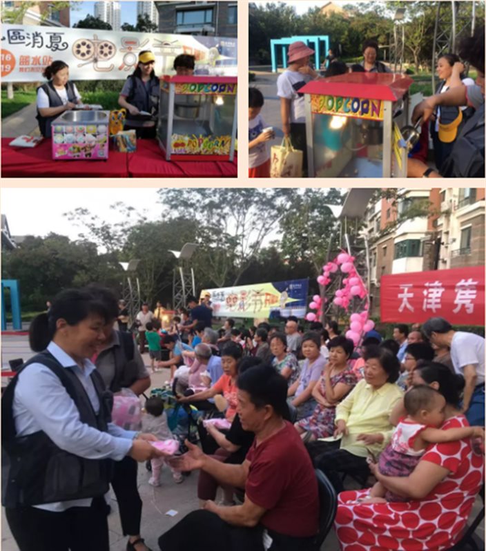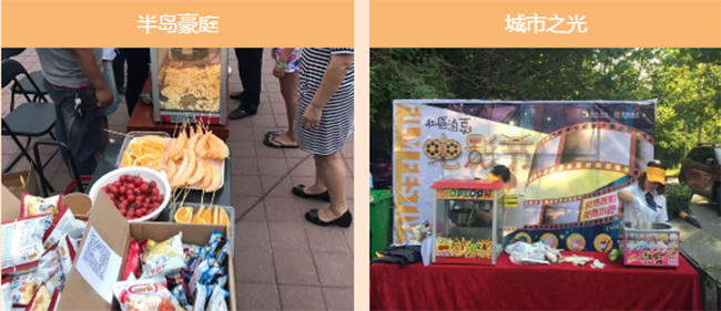 香甜的爆米花、新鲜的水果、美味的零食、可爱的棉花糖,俗话说的好:要想俘获我的心就必先俘获我的胃,面对如此多的美食诱惑,便已经让人无法挪动脚步了,更何况还有一段精彩的影片和那么多亲切可爱的邻居和物业人!