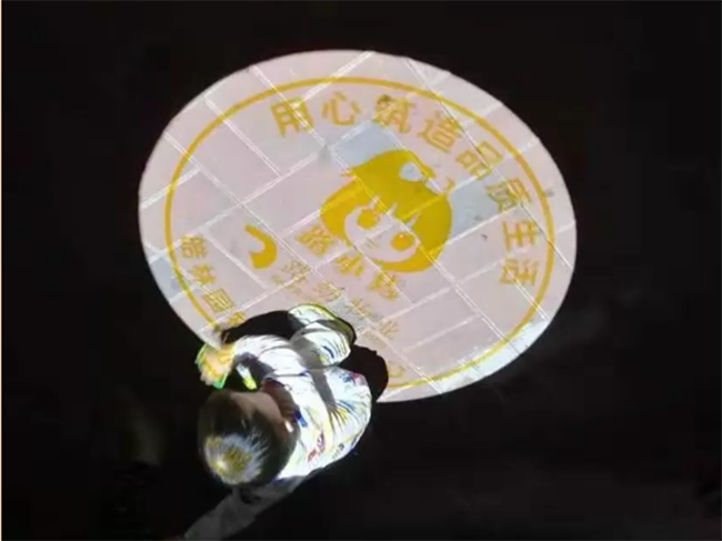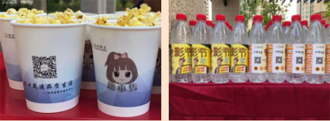 此次电影节活动还有一处令人惊艳的地方,那就是映在地上的路小隽灯光,以及贴着路小隽标识的杯子、水瓶及各式各样的小礼品。