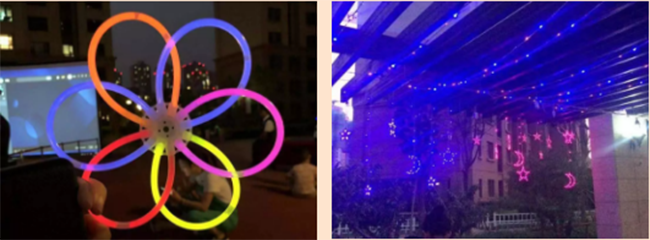 此外,为了让夜晚更加的绚丽多彩,皓林园还特意装饰了许多小彩灯,并为大家准备了会发光的头饰和荧光棒,梦幻无比!真的是每到一站都能感受到不一样的惊喜!