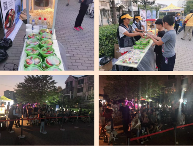 伴着月光观影虽有情调,但也很容易让蚊虫美餐一顿,为让大家免受蚊虫叮咬之苦,路劲/隽丰物业人现场贴心的准备了200多瓶驱蚊花露水,这下蚊子就只能在外徘徊了!