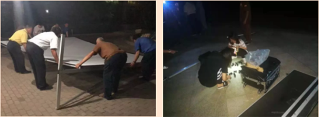 撑架子、立起大屏幕、摆放座椅、清扫布置时产生的垃圾、准备零食和小礼品等等,每一个环节都不容松懈!