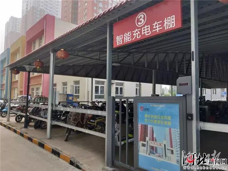 石家庄市公租房小区红河小区内的智能充电车棚。记者宋平摄