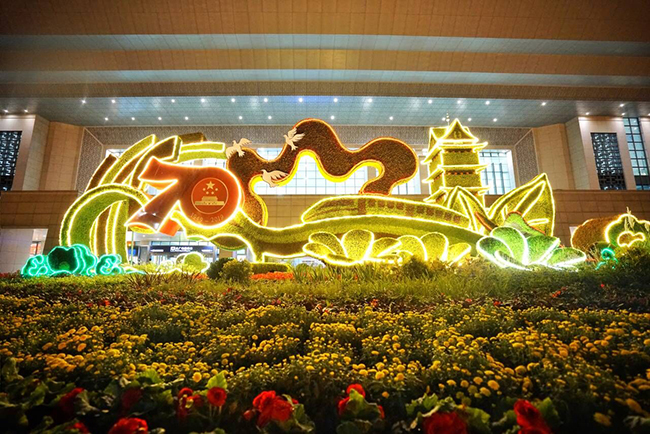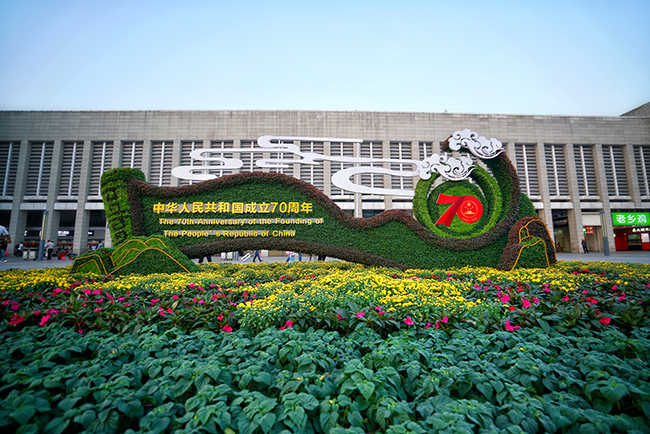 为庆祝新中国成立70周年,美化城市环境,根据合肥市绿化办、包河区农林水务局要求,合肥湖滨物业管理有限公司以“祝福祖国、欢度国庆”和“不忘初心、牢记使命”为设计主题,在合肥高铁南站、合肥火车站、合柴1972文创园等处设置了大型立体绿雕、花境,一处处绿雕造型各异,独具匠心,共摆放各类洋凤仙、孔雀草、海棠花、小菊、糖蜜草、深蓝鼠尾草等花卉品种20万余盆,面积达10000㎡,达到景观造型立体多样,靓丽抢眼的效果,营造了和谐、欢乐、祥和的节日气氛,喜迎祖国70华诞。目前,主题花展正在稳步推进中,计划于9月25日前全部完成布展。