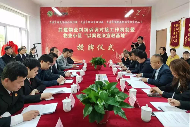 2019430日上午,太铁花园小区里人头攒动,热闹非凡,太原市杏花岭区法院与市物业协会在此共同召开共建物业纠纷诉调对接工作机制暨物业小区以案说法宣教基地授牌现场会。