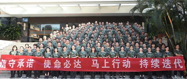 军训环节是本次集训活动的特别策划,目的在于通过体验式的军事训练,使参训人员体会到军人身上令行禁止、团结一致的优良工作作风,并内化吸收、应用到日常工作当中。尽管军训时烈日当空,每一个人仍然严格要求自己,听从指挥,心往一处想,劲往一处使。那一刻,无论我们是什么身份、什么职级,我们都站在了同一个队伍里,忘记烈日炎炎下已是汗流浃背。“不忘初心,牢记使命,信守承诺,使命必达”的呐喊声整齐划一,响彻上空。最终在规定的时间内完成军训活动,用实际行动践行了“信守承诺