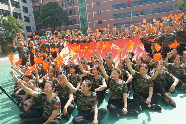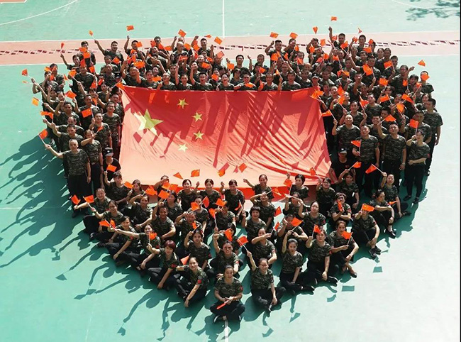 集训最后环节组织了一场特殊的献礼仪式。华南区域公司的管理精英们齐心协力,在烈日下摆出“中国70”的造型,紧紧簇拥在五星红旗周围,用一遍遍激情澎湃的“我爱你,中国!我爱你,中国!我爱你,中国!”喊出对祖国母亲的深情告白。