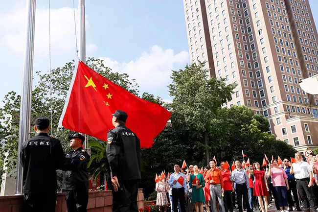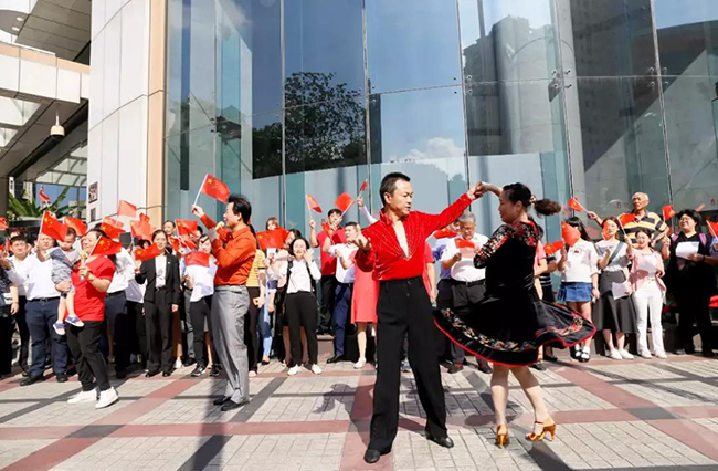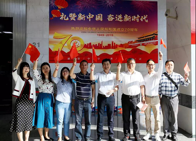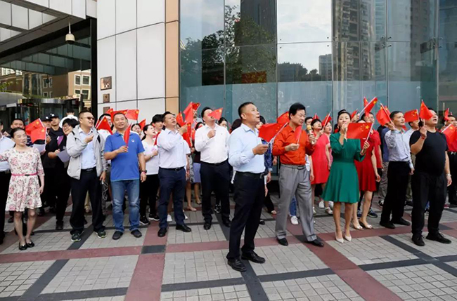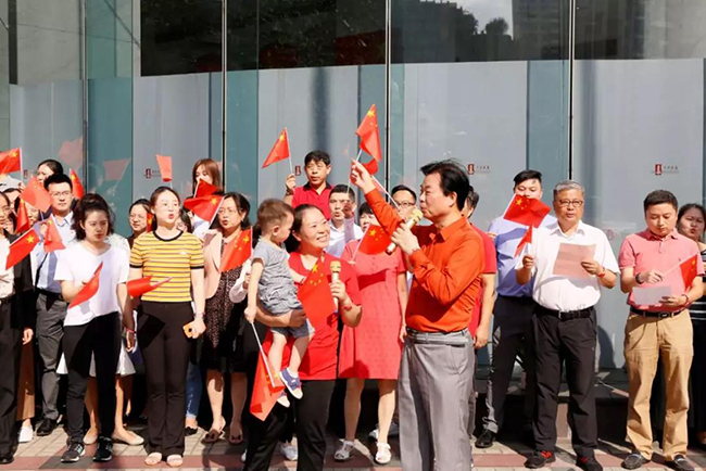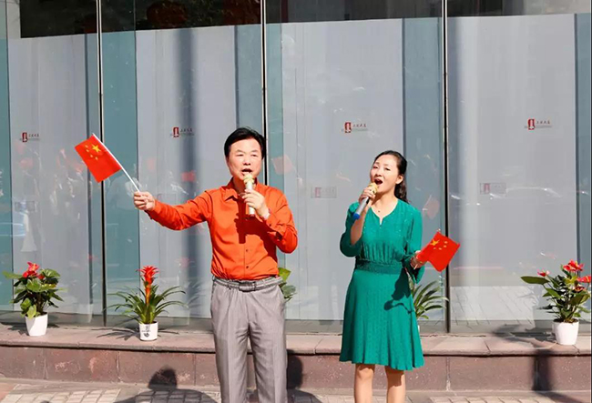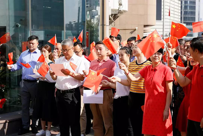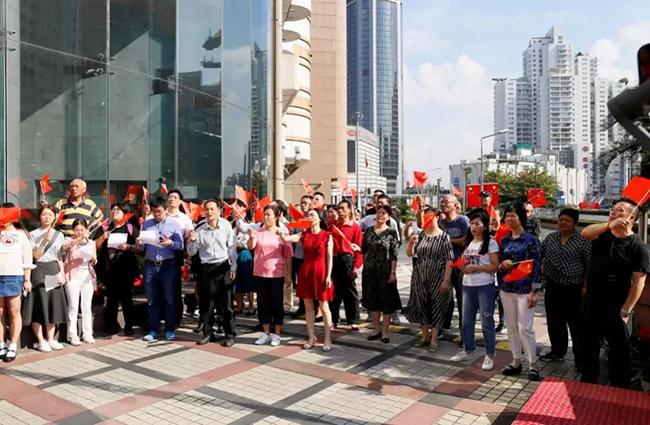 今年的十月一日是新中国成立七十华诞,它给我们带来一种喜庆,一种诗意,一种遐想,一种憧憬,更是带来一种希望,当全国上下每一寸热土都浸透着国庆七十周年的欢欣幸福时,上实大厦管理处和楼宇联合党支部组织楼内各企业,共同举行了一场升旗仪式以及“快闪”,用自己的歌声,迎接新中国七十周年华诞。