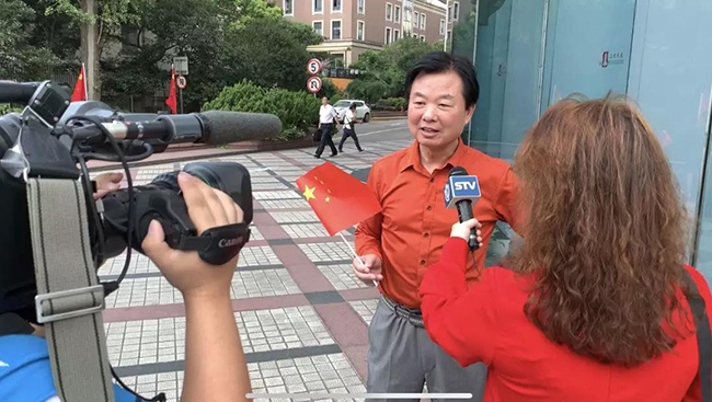 上实大厦业主黄伟林作为领唱之一接受了上海电视台采访,他表示:“今天的活动令人振奋,非常震撼,大家唱得很有激情,唱出了作为一名中国人的自豪感。”
