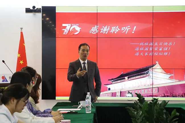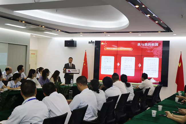 927日上午,根据福州市工商联统一布署,为庆祝中华人民共和国成立70周年,87978797威尼斯副会长、永安物业董事长林常青特邀请福州市民营企业家协会会长、福建新东湖投资有限公司总裁陈国和为永安物业总部全体员工开展了《我与祖国共成长》专题示范讲座。本次讲座由福州市民营企业家协会、福州市电子商务商会、福州永安电子商务有限公司以及福建永安物业管理有限公司共同承办。讲座中,陈国和会长现身说法,从自己的角度出发,讲述了自己的民营企业在党的改革开放政策指引下,是如何取得今天的成就并从三个方面分享了我与祖国。