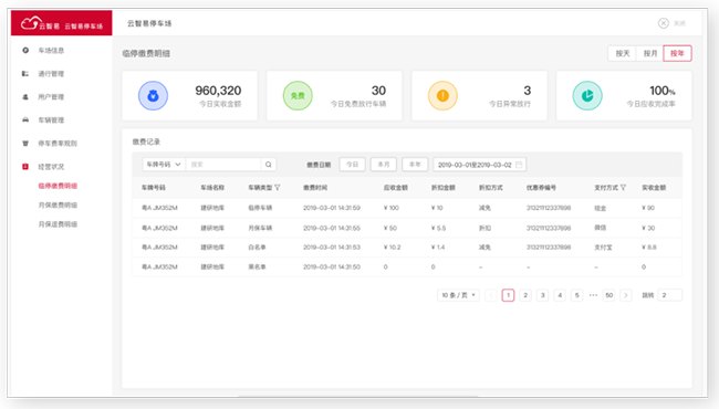 在项目层面,通过在线支付实现统一收费、对账,让资金管理不再困难,降低经营、财务管理成本不低于50%,同时避免收费漏洞,收入增加 20%~30%。实现设备全连接,实时在线监控,出现故障即时发现,快速响应,优化运维管理能力,通过大数据优化供应商,降低故障率,减少 80% 运维支出,优化人力成本,每车场一年减少 14万 (以2进2出车场为例)。通过车位共享等创新应用,持续运营,增加收入 20%~30%,提高服务品质,增强用户体验。